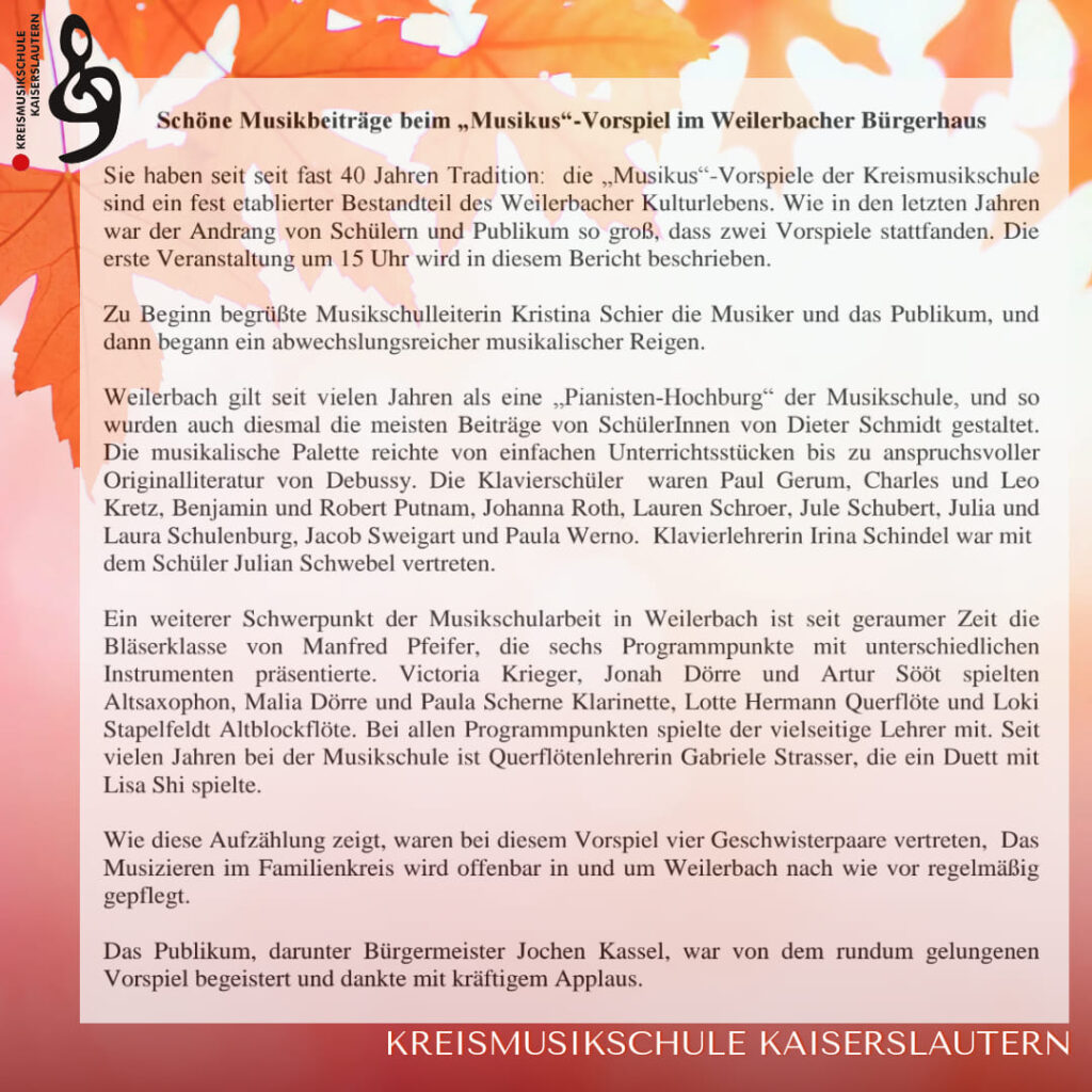 Musikus – Schülervorspiel in Weilerbach